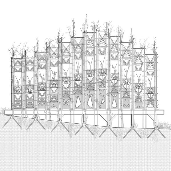 این سازه با ترکیب روشهای سنتی پیوند درخت و طراحی محاسباتی مدرن، فضایی مشترک