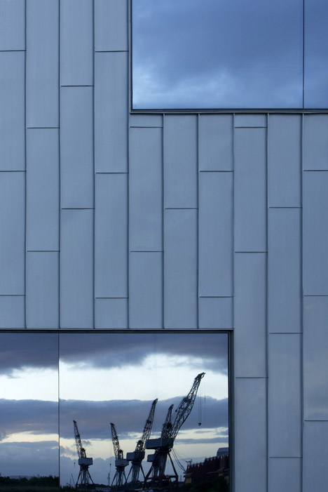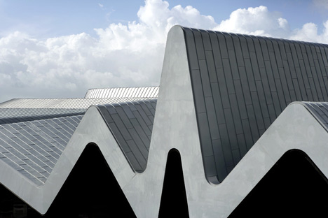 معماران زاها حدید پروژه موزه ریورساید در گلاسکو – اسکاتلند – را با سقفی زیگزاگ شکل و پوشیده شده از فلز روی به اتمام رساندند . ساختمان با نمای براق و 36 متر ارتفاع مشرف به رودخانه کلاید Clyde می باشد . نوارهای نور در داخل ، مانند شکاف های نوری سبز رنگ در قسمت زیرین سقف موجدار به نظر می رسند . موزه ریورساید از نام خود مشتق شده و طراحی آن از شهر به رودخانه جریان می یابد و نماد یک رابطه پویا است که موزه صدای اتصال شهر به رودخانه و همچنین انتقال از یکی به دیگری می باشد .