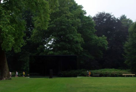 این غار در داخل یک جعبه شیشه ای ، یک پاویون در تیلبورگ هلند است که توسط طراح ملبورنی کلوم مورتن Callum Morton طراحی شده . ساختار در نقطه ای قرار گرفته که هشت مسیر در یک باغ رسمی به سبک باروک همگرا می شوند . غار زیرزمینی Grotto در شیشه ای ملبس شده که مناظر پارک را در طول روز منعکس می کند اما در شب یک فضای روشنی بخش است که ساختارِ صخره مانند را آشکار می کند . فضای داخلی در درون زمین فرو رفته و در سطح دید چشم قرار گرفته تا با یک نظر دیدن از بیرون پارک ، قابل رؤیت باشد . این پاویون توسط طراح هلندی Olav Koreman مبله شده .