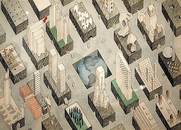 رم کولهاس در درسْ گفتار جهان مسطحِ مابعد امریکایی بر مفاهیمی همچون جهانی شدن، شرق شناسی و تاثیر ان ها بر الگوواره هایی همچون اسمان خراش ها می پردازد