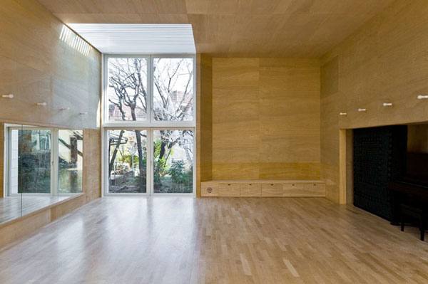 معاران اهل توکیو فومینوری نوئاسوکو، یک فضای ترکیبی زندگی و کار در ژاپن با نام "hall and house" طراحی کرده است . خانه مسکونی که برای یک مربی رقص می باشد ، از یک استودیو بزرگ پر نور و یک محل اقامت خصوصی کوچک در طبقه دوم تشکیل شده . ساختمان به دنبال قطع ارتباط خود از محیط ناخوشایند اطراف است و بازشوها تنها به سمت باغ خصوصی هستند .