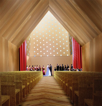 طراحان این طرح توضیح میدهند: اين ايده اينگونه مي باشد كه اگر شما گردهمایی با افراد کمتری مدنظر دارید، متعاقبا شما میتوانید هنوز بهترین فضاو متناسب ترین را تجربه کنید. کف های متنوع چوبی بگونه ای استفاده شدند که بنا بر اهمیت فضایی این طرح ،طرحایشان متفاوت تر و پیچیده تر میشوند؛ بطور مثال، اتاق برج داراي کفپوش هایی چوبی عریضی است که الگوی خطی مطابق با درختهای موجود در سایت را دنبال مي كند که الگوي شعاعی از مرکز اتاق را بوجود آورده است. مشخصه ی شاخص این طرح، برج كليسا مي باشد، يك برج كليساي بلند قامت که پتانسيل غلبه بر بلندترين کلیسای اسكانديناوی را با 118.7 متر طول دارامی باشد.