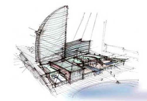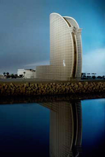 ساختمان هتل دبليو بارسلونا كه به " بادبان " مشهور شده است همچون يك نماد مدرنيته بر بالاي درياي مديترانه قد برافراشته است.