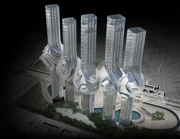 واحدهای اجاره ای، کاربری نیمه ی پایینیِ این برج ها، را به خود اختصاص می دهند که با یک چهار چوب مستحکم مطابقت دارند. دگردیسیِ فضاییِ عمودی، یک بار رخ می دهد و به طور عملکردی شرایط تغییر می کند. این فرم، از قسمت محکم و با استحکام خود دچار شکست شده، آزادی فرمال و پانورامیک بدست می دهد. این مفصل بندی ها به طور ویژه، به آیکن های این بافت، از جمله؛ ساختمان امپایر استیت، میدان تایمز و غیره، پاسخ می دهد. نماهای شرقی و غربی [با توجه] به شرایط شهریِ متفاوت، پاسخ می دهد، بر همین اساس [حد] پیچیدگی ها در شرق بالا و در غرب[در حد] کمینه است. از نظر برنامه ریزی، چنین هم افزایی هایی [در سطح] زندگی عمومی؛ بواسطه ی این پنج برج به یکدیگر مرتبط شده اند. این فضاها، خرده فروشی، لابیِ هتل، سالن های استراحت، مکان های ملاقات و تجمع، محدوده های تفریحی، مکان هایی برای رصد چشم انداز شهر، سالن رقص، و دیگر فضاهای عمومی و تفریحی را شامل می شوند.