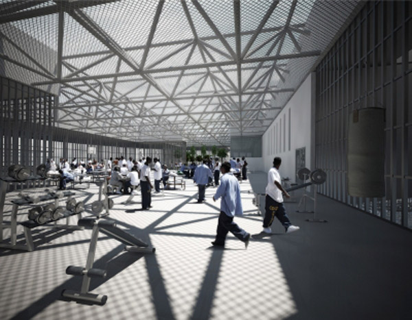 تمام فضاهای خالی در زیر حلقه سازه ای به شکل کارآمدی توسط یک شبکه ی متراکم از میله با استفاده از انرژی جنبشی موج در فراهم آوردن الکتریسیته ی ساختمان مورد استفاده قرار گرفته است. این محدوده به وضوح از هم جدا شده و در بخش های متفاوت ساختمان قرار گرفته اند. زندانیان در انتظار محاکمه و حبس ابد در جهات مختلف و جدا شده به واسطه ی امکانات به کار گرفته توسط آنها در زمان های متفاوت جابجا شدند. همه ی اتاق های خدمات پیرامون هسته ی مرکزی حجم قرار گرفته و شامل محورهای بالارونده و متصل به جایگاه فرود هلی کوپتر و مناطق بارگیری قایق ها قرار می باشند. بخش های, مدیریتی, امنیتی, کنترل و کارکنان از بقیه ی ساختمان جدا شدند.