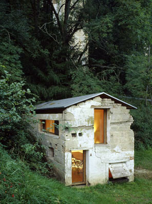 این مداخله خلاقانه که موفق به پیوند موزون و مطلوب بینش مدرن قرن بیست و یکم با دیدگاه روستایی قرن هفدهم در یک کالبد می شود. چندین جایزه بین المللی را در سال 2005 برای این گروه معمای آلمانی به ارمغان آورده است. سازه داخلی جدید از چوب ساخته شده و توسط جرثقیل گونه ای درون بنای قدیمی قرار داده شده است که از دیوارهای قدیمی سنگی، مقداری فاصله دارد. محل قرار گیری پنجره ها و در ورودی در موقعیت قبلی حفظ شده و به منطق اولیه (یک درب کوچک در گوشه راست نما برای رفت و آمد دام ها و تعدادی پنجره برای استفاده به عنوان انبار) وفادار است.