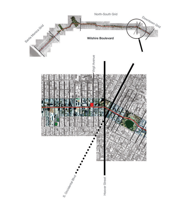 فرایند طراحی جاری در پروژه به نمایش زمان در سینمای تارکوفسکی و مفهوم دلوزی تصویر- زمان که به پیشرفت خطی حرکت از طریق فیلم متکی نیست, ارجاع دارد. این پروژه به دنبال پرش، به نوبه ی خود ساختار روایی ممتد شهری را از بولوار ویلشایر جا به جا می کند. موقعیت قرار گیری ساختمان در تقاطع بولوار ویلشایر و خیابان ویرجیل, توده ی ساختمانی را دچار تغییر و تحول کرده، همانگونه که ساختمان بلند می شود، و مجدداً خود را در یک ردیف به سمت مرکز شهر با تولید یک تالار زنجیر وار داخلی از هم گشوده شده توسط دو سطح اولیه ی اغراق آمیز جای می دهد.