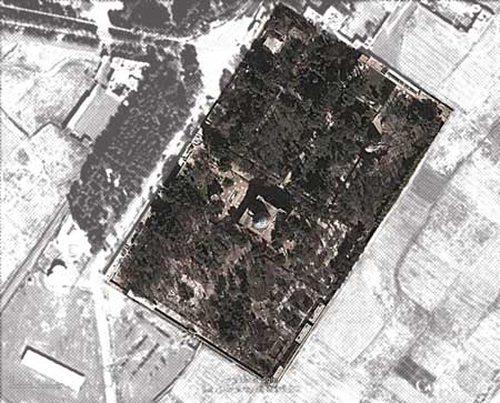 دور تا دور برج، در قسمت اختلاف سطح، چشمه سارها در اطراف، دایره ای وسیع به مرکز خود برج شکل گرفتند . همه ی بنا از سنگ گرانیت با اجزای مثلثی شکل و تو رفتگی ها و برون آمادگی هایی ساخته شده که تا اندازه ای شکل خیمه را تداعی می کنند و این به نام خیام اشاره دارد، چون پدرش خیمه دوز بوده نامش را به همین مناسبت برگزیده است . از طرف دیگر حوض ها با کاشی فیروزه، که در مجموع قسمتی از ستاره را نشان می دهند، به تعداد هفت فلک و هفت آسمان و هفت تپه باز به دانش ستاره شناسی و نجوم خیام اشاره دارد . روی هم رفته، مجموعه حال و هوایی شاعرانه با درختان تنومند در اطرافش به وجود آمد و همان طور که خواست خود خیام بود، کاملا باز است و مزارش بهاران گل افشان . ... »