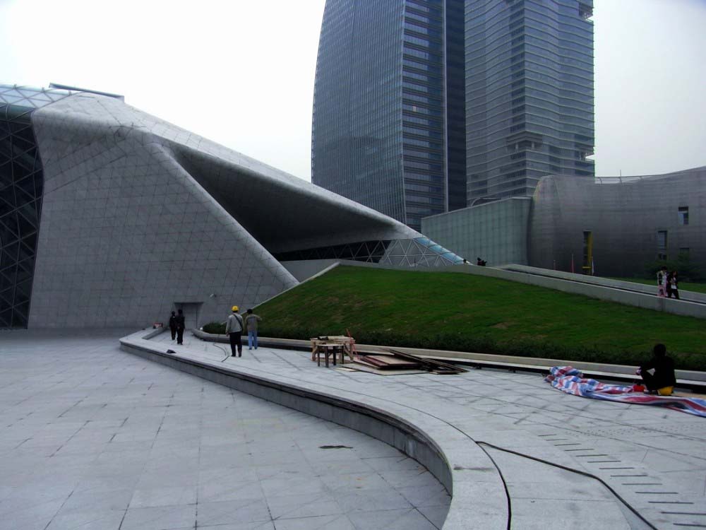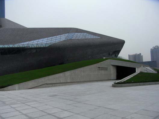 در چشم انداز رودخانه پیرل Pearl ، و در قلب بافت پیشرفته و فرهنگی شهر گوانگژو چین، خانه اپرایOpera House گوانگژو خود نمایی میکند. اقتباس زاحا حدید از تکنولوؤی و هنر به صورت توأمان در طراحی و ساختار ، این بنا را به یک اثر تاریخی و دیرپا در هزاره جدید تبدیل خواهد کرد و بر شهر گوانگچو به عنوان یکی از مراکز فرهنگی آسیا تأکید می کند. طرح که به صورت دو صخره منحصر به فرد است ، با ایجاد دسترسی به کناره رودخانه و محیط اسکله و ارتباطی نو با شهر جدید عملکرد شهری را تسهیل می کند .ساختمان پس از صعود ، به پائین ترین قسمت بلوار ژوجیانگ Zhujiang نزول می کند . در جایی که یک طرف مکانی برای موزه پیشنهادی و طرف دیگر که به فعالیت های شهری اختصاص داده می شود . خانه اپرا به عنوان ضمیمه ای به پارک توریستی های زین شا Haixinsha ، مکانی منحصر به فرد را، در حاشیه طولانی رودخانه به عنوان نقطه تمرکز بازدید کنندگان عرضه می کند. زمانی که به خانه اپرا از پارک ، در مرکز بلوار ژو جیانگ ZHUJIANG نگاه کنید ، مقدمه ی بصری باشکوهی را برای پارک توریستی مشاهده خواهید کرد و زمانی که از رودخانه دیده می شود ، برج ها ی ژو جیانگ در شهر جدید زمینه ای دراماتیک برای خانه اپرا بوجود می آورند و منظره ای متحد از ساختمان های فرهنگی و شهری در بافت حاشیه رودخانه ارائه می کنند . خیابانی داخلی و یک تفرجگاه در میان محوطه که از موزه پیشنهادی شروع می شود به سمت خانه اپرا هدایتگر است . کافه ، بار، رستوران و خرده فروشی ها که شبیه پوسته صدف بر تغییرات سطحی تعبیه شده اند در یک تفرجگاه که محدودیت ارتفاعی دارد ، جا گرفته اند. وسایل نقلیه خدماتی در دو انتهای مسیر هواجیو Huajiu، خانه اپرا و ساختمان های تئاتر را قابل دسترسی می کنند . دسترسی VIPبه خانه اپرا از محدوده غربی مسیرِ هواسیا huaxia ایجاد شده است. این مکان 70000متر مربعی شامل 1800صندلی در سالن تیاتر اصلی،لابی ورودی وسالن استرحت،تالار چند منظوره ودیگر امکانات لازم میباشد.