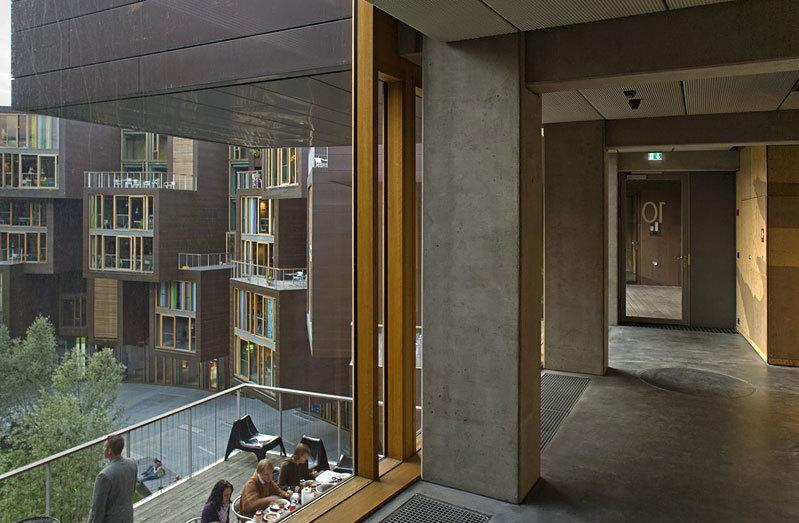ساختمان خوابگاه تایتگن کپنهاگ معمارانِ لاندگارد و ترانبرگ آرکیتکتر آپارتمانی ساختمانی است دایره ای شکل در دانمارک. ساختمان دایره ای شکل با 288.000 مترمربع زیربنا، دارای 360 واحد است. ایدۀ اصلی پروژه در واقع همان ویژگی اصلی هر خوابگاه که فضاهای مشترک عمومی و شخصی است، می باشد. فرم سادۀ دایره ای شکل خوابگاه تایتگن در واقع پاسخی است شهری به بافت ،از طریق بیان معماری جسورانه در منطقۀ از شهر که اخیرا برایش برنامه ریزی صورت گرفته. فرم دایره ای شکل ساختمان که سمبل برابری و عمومیت است، ازطرفی در تضاد با حجم های بیرون زده از نما است که بیانگر حریم اختصاصی هریک از ساکنان است. طبقه های بالا با 360 واحد مسکونی در حاشیه سازماندهی شده اند وفضاها با عملکرد همگانی به سمت حیاط درونی مجموعه جهت یابی شده اند. امکانات رفاهی برای کل ساختمان بصورت مشترک در طبقۀ همکف تجمیع شده اند. آپارتمانها در عمق های متفاوت و در ریتم متناوبی قرار گرفته اند، که از طریق ترکیبی که دارد بیانگر هویت منحصر بفرد شخصی است و کاراکترها و سیمای بلورین و خنثی در ترکیب خارجی ساختمان ، فضای استوانه ای شگفت اوری را پدید اورده است. فضاهای عمومی وگروهی ساختمان هم به همان نسبت شکل داده شده ادند. آنها بصورت توده های پیش آمده در نمای ساختمان به طرز چشمگیری برجسته شده اند. این بلوک های ساختمانی به طرز چشمگیری در مقابل مرکز حیاط داخلی بر افراشته شده اند. نمای خوابگاه از پانل های آلیاژ مس درست شده است که بوسیلۀ پارتیشن شیشه ای و سیستم پروفایل صفحه ای متحرک با چوب بلوط امریکایی تکمیل گردیده شده است. فضای داخلی ساختمان با سازه بتنی روکار و پارتیشن های چندلایه چوبی تعریف شده است. در سراسر خوابگاه کف منیزمی و سقف های آهنی آکوستیکی بکار رفته است.