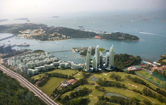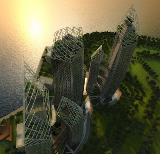 دانیل لیبسکیند، معمار نامدار اولین برج به ادعای خودش فراـ سبزِ طرح عظیم توسعه بندری ساحل جنوبی سنگاپور را کامل کرده است.این پروژه که رفلکشنز نام دارد در ساوترن بـِــی واقع شده و شامل شش برج شیشه ای، یازده بلوک آپارتمانی است و دارای چشم اندازهایی ویژه از خلیج، زمین گلف باشگاه کـِــپــِـل، پارک های محلی و فیبرماونت می باشد. این طرح توسعه که تاکنون 96 درصد از 740 واحدش پیش فروش شده، اولین هنر نمایی مسکونی لیبسکیند در آسیا است و شکلی به ظاهر عجیب و غیر معقول دارد. البته خیالی نیست ، لیبسکیند یک معمارـ ستاره خوش نام است. اگر به تمام انرژی و منابع و دیگر بخش هایی که صرف ساختن ان برج های شل و ولِ کـِــرو مانند شده است و فرایندی که برای تامین ایستایی سازه ایی ان ها طی شده فکر کنیم، تصور این که پروژه ایی به بد قوارگی رفلکشنز به تمامی سبز می باشد سخت خواهد بود. با این وجود رفلکشنز اعتباری سبز دارد؛ مجموعه جایزه نشان طلای سبز سال 2008 اداره ساخت و ساز سنگاپور را دریافت کرده و این بدین معناست که این مکان از بالاترین سطح ذخیره سازی انرژی بر اساس استانداردهای سنگاپور برخوردار است. وب سایت لیبسکیند در توصیف مجموعه اورده است: باغ های بلند مرتبه ی سقف هایِ به هم پیوسته شیب دار که توسط پل هایی معلق در فضا به هم وصل شده اند مجموعه ایی از سکوها و فضا های بازی را فراهم آورده اند که با چشم اندازی 360 درجه رو به محیطی خیره کننده؛ شامل استادیوم بین المللی سنگاپور وتفرجگاه جهانی سنسوتا محصور شده است.