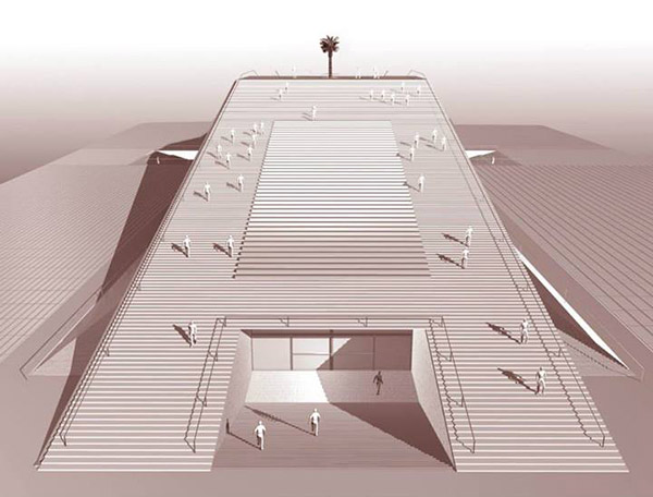 طرح به موجودات خزنده در مناطق کویری شبیه شده بود، البته کاملا به صورت غیر عمد و در نتیجه ترجیحات طراحی این اتفاق افتاد. فکر میکنم مردم بعد از حوادث تلخی مثل زلزله به لحاظ روحی و برای تسکین درد مشترکشان ترجیح میدهند بیشتر با هم باشند، ایده طرح ایجاد یک آمفی تاتر روباز بود که به مردم کمک کند با وجود یک فضای شهری کمتر تنها بمانند و برای قسمت تماشاچی از فضای بام استفاده شد ، در قسمت انتهایی فرم خطی ساختمان گرادن هایی بودند که ما را به پشت بام میبردند.