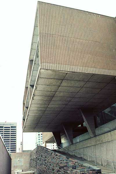 مرکز پلان چلیپایی حفر شده تا یک حیاط بزرگ ایجاد شود، " حیاط با استخر که پیرامون آن نام کشته شدگان جنگ به ثبت رسیده است." دو پلکان، یکی سرباز و دیگری محصور در صفحات باریک شیشه ای، سکون و سردی این فضای خالی نمادین را جان بخشیده اند. عناصر برنامه ای موزه ی هنر، مضمون سوم موجود در کل توده ی ساختمان، در سه سطح قاعده ای یکپارچه توزیع یافته که از سنگ پوشیده شده و جا به جا با روزنه های باریکی سوراخ شده است. صبغه ای از معماری میس وان در روهه را می توان در سازه ی معماری مشاهده کرد، و می توان با اقتدا به مارشال مک لوهان نظریه پرداز رسانه های جمعی در این مورد مدعی شد که "سازه همان پیام است". دیوارها پرداخت زمختی خورده اند و بتن تنها مصالحی است که در سرتاسر ساختمان به کار رفته است. به نقل از سارینن، "این ساختمان تماما بتنی است. هر سطح آن بخش کاری سازه به حساب می آید."