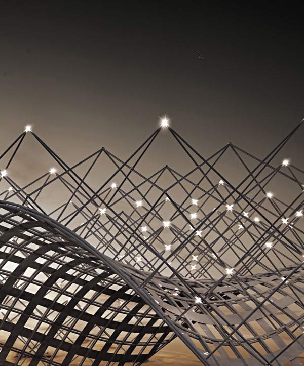 این تندیس به عنوان یک دروازه ی ورودی و یک مفصل ارتباطی از دو امر متضاد ارائه شده است: سیالیت بخش پایینی دروازه در تپه های ملایم چشم انداز در پس زمینه و جذب یک شبکه از نور که می تواند در قامت یک اتصال در کهکشان ها به مثابه یک تضاد از زمین و آسمان دیده شود، نمایان می شود. بعلاوه این آیکون باید آزادی تفکر از یک طرف و دستورالعمل های مشخص از طرف دیگر را برای یک سیستم و نظم در علوم را در تقابلی از امکانات بی نهایت و محدودیت های تکنیکی نمود دهد.