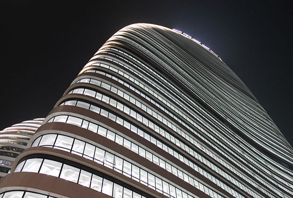 به تازگی افتتاحیه بزرگ " وانگجینگ سوهو " با طراحی معمار سرشناس بین المللی، زاها حدید، برگزار گشته است. این مجموعه ی چند عملکردی که از سه ساختار کِرو تشکیل شده است، واضح ترین و قابل تمایزترین ساختار در پکن می باشد که در مسیر فرودگاه این شهر قابل روست می باشد. این سه حجم ساده و مرتب، به شکل رشته کوهی روان، شکل گرفته اند و همچون یک گروه سه نفره، چشم اندازهایی بی نظیر از شهر را ارائه می نمایند.