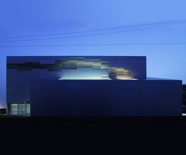 بازشوی درب های فولادی به تراس شن امکان ورود باد و ایجاد دیدهای مناسب از چشم انداز به محیط ناهارخوری را فراهم می کند. ورود نور ملایم از یک شکاف خطی در امتداد خط سقف، باعث ایجاد جوی حاکی از تغییر نور در طول گذر زمان می شود. دیوار غربی نمایان گر استطاع نورهای منقطع، وسعت دادن به حس سیالیت و کلی گویی با قطعات گوناگون است.