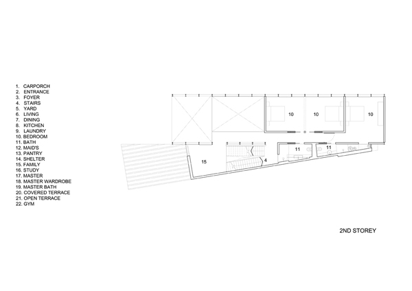 این ساختمان مسکونی تراس دار که در گوشه ی برجسته ای از فابر تریس سنگاپور بنا شده توسط معماران هایلا طراحی گشته که از صفحه هایی از باریکه های تخته های چوب و الوار برای حفظ حریم خصوصی ساختمان استفاده نموده است. این روکش نمای منحصر، با پوشش تمام ارتفاع جانبی خانه و با حصول اطمینان از انزوا و حریم خانه، میزان مناسبی از نور و تهویه مطبوع را نیز فراهم می کند.
