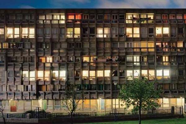 "رابینهود گاردنز" نامِ یک مجموعه مسکنِ اجتماعی است که در شرقِ لندن و در منطقهی مسکونی "پُپلار" قرار دارد. این مجموعه را الیسون و پیتر اسمیتسن در سالِ ۱۹۷۲ طراحی کردند. بروتالیسمِ آشکار در ساختمانهای این مجموعه نمونهای عملی از نظریاتِ اسمیتسنهاست؛ نمونهای که امروز با آیندهی مبهماش مواجه شده است. "رابینهود گاردنز" در بریتانیای پس از جنگ ساخته شد؛ درست زمانی که برجهای مسکونی بهمثابه نمادِ بهبودی و رهایی از جنگ ساخته میشدند. بسیاری از این ساختمانها، از جمله مجموعهی مذکور،در سبکِ بروتالیسم و با استفاده از بتن ساخته شدند.