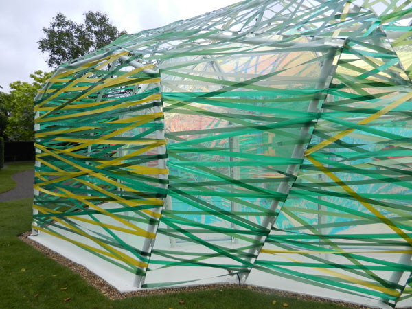 افتتاحیه این پاویون پانزدهمین مراسم سرپنتین بوده و از سال 2000 با سازه ی چادری و زاویه دار زاها حدید آغاز گردیده است. معماران این گروه اسپانیایی خوزه سلگاس و لوسیا کانو توضیح داده اند که این پاویون به هیچ عنوان شبیه به ساختارهایی نیست که تا کنون در این مکان تجربه شده اند و این پاویون "ادای احترامی به تمامی طرح های پیشین و تجلیلی از داستان هایی ست که در این طرح ها گفته شده است".