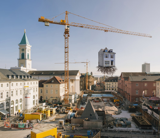 هنرمند آرژانتینی لئاندرو اِرلیش "کشیده با ریشه ها" را تولید کرد، جرثقیلی سنگین که یک خانه را در محل بازار در کارلسروهه، آلمان در میانه زمین و آسمان نگاه داشته است. خانه با ریشه¬های معلق از پایین آن تجسم عنوان انتخاب شده است.