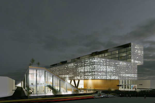 در زیرزمین و توزیع مجدد فضا، فرم پروژه از دو بلوک روبروی هم به یک فرم L شکل تغییر یافت و امکانات