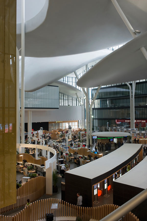 دفاتر از طریق پل های پیاده داخلی که در سطوح مختلف کشیده شده اند به یکدیگر متصل