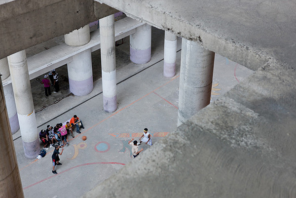 بخش از سایت زمین فوتبال، به مکانی برای ژیمناستیک تبدیل می شود. یک پناهگاه برای کودکان