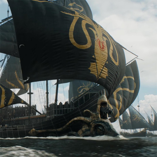 کراکن kraken، که یک موجود دریایی عظیمالجثه است بر روی بادبان کشتیهای خاندان