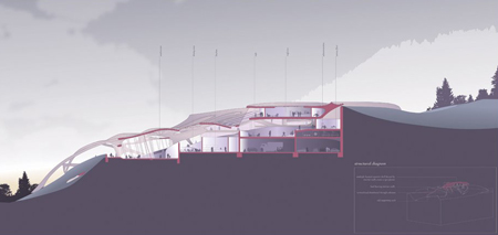 مرکز توانبخشی رینبرگ کاری ازساره اشنایدر فضای مرکز توانبخشی رینبرگ یک ایده برای ایجاد یک مرکز پزشکی درقسمت آلپ اتریش می باشد که توسط ساره اشنایدر معماری شده است. این مرکز ظرفیت 50 مریض را داشته و دارای بالکن هایی با چشم اندازکوه است و مسیرهایی جهت پیاده روی درجنگل های اطراف دارد. درمکاتب روانشناسی در آسایشگاه های قرون 19و20 اساس کارایمان به دوچیزاست. یکی ایمان به تکنولوژی و دیگری ایمان به قدرت طبیعت که این سوژه درطبیعت دست نخورده آلپ به وفوریافت می شود. دراین میان یکی ازموارد موثر در طراحی، ایده گرفتن ازهنرخطاطی بود. این پروژه براساس رشد طبیعت طراحی شده، رشدی که همراه با آراستگی بوده وعلاوه برتوپولژیک بودن متناسب با هنرخطاطی شکل می گیرد.آراستگی موجود یک رابطه سیمبیوتیک را با محیط ایجاد می کند. وبا برقراری یک فیدبک باطبیعت باعث اصلاح اشکالات نیزخواهد شد.این آراستگی توپوگرافی چشم انداز، باعث خلق یک ساختار برگرفته از یک طرح خطاطی درتمامی سطح تحت سیترۀ ساختار حجمیک این پروژه می شود.