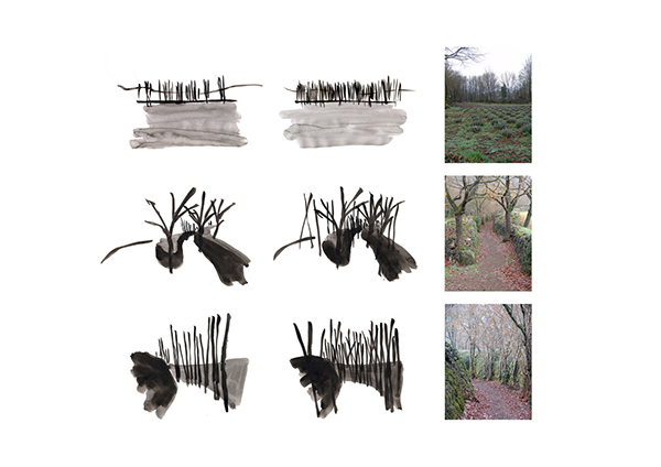 شکل شکسته خطوطی که مسیر را شکل داده اند با توده های سنگی گردی که پشت حصارها انباشت شده اند، در تضاد است.