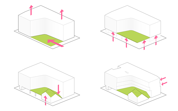 مرتفع و یک مرکز اجتماعی در سطح خیابان و بالای
