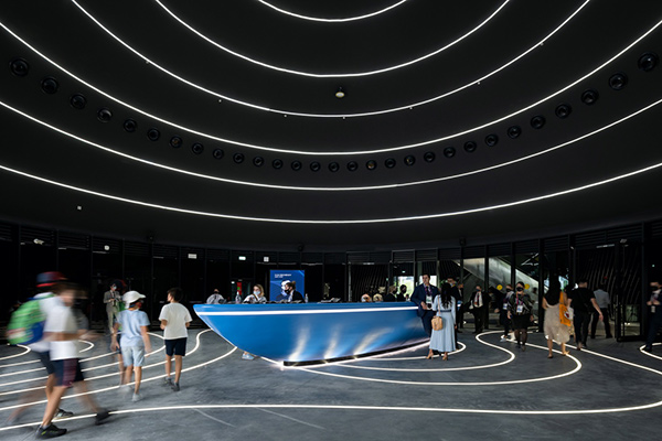 توسعه، آفرینش و پیشرفت غیرقابل توقف در طراحی ترکیبی پاویون متجسد نماید. غرفه به