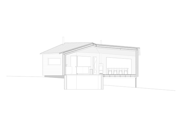 کند و به چشم انداز جنگل شمالی خیره می شود. حجم ساختمان در سه جهت و از یک نقطه