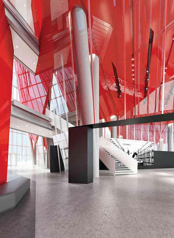 متمایز پروژه، ابعاد بزرگ و قرمز روشن و چینخوردگیهای فضای دهلیز ورودی آن است