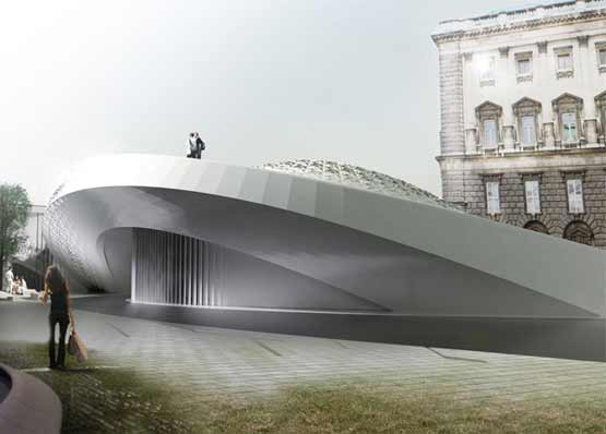 این پروژه با طراحی شرکت Prechteck درهافبورگ شهروین درکشوراتریش ارائه شده است.تسهیلات فرهنگی این کتابخانه درزمینی به مساحت 1200 مترمربع درحجمی دواربا یک هسته مرکزی درزیرزمین واقع شده است.این سازه دارای یک سالن چند منظورۀ مرکزی با مساحتی کمتراز600مترمربع واستدیویی جهت خلق آثارفرهنگی، یک رستوران وچند فروشگاه می باشد. شاید اولین چیزی که ازطراحی بنظرآید،توسعۀ پارک حاشیه ای این سازه باشد که دراطراف آن گسترده شده است.این سازه درقسمت شمال غربی اززمین فاصله گرفته وبا یک حرکت آرام ودوار،درهم می پیچد وحول یک مرکزمی چرخد،بطوری که یک حرکت کراس اوریا متقاطع حاصل می شود.اینک آرک ادامه یافته ودوباره به سطح زمین ملحق می شود.تمامی امکانات موجود دراین سازه بصورت یکپارچه وپشت سرهم قرارگرفته اند. بطوری که بیننده درفضایی گام برمی دارد که قادربه تجربۀ چندین احساس مرتبط با فرهنگ هافبرگ دراین فواصل خواهد بود.