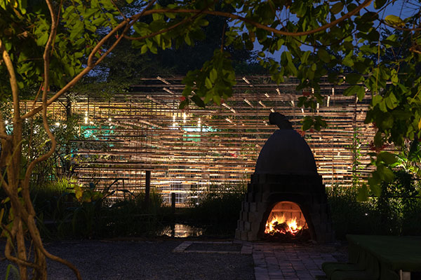 از همین رو تصمیم گرفتیم سازه ای بسازیم که بتواند خودش را با محیط اطرافش ترکیب کند، کیفیت های خاص این سازه را می توان در مفاهیمی همچون اختلاط، سبکی، پنهان شدن و نفوذ در نظر اورد. نتیجه یک سازه ارگانیک است همچون نی ای که در یک فضای باغی نشسته است.