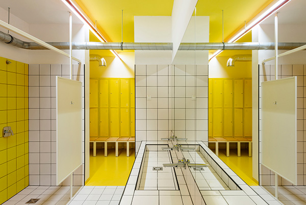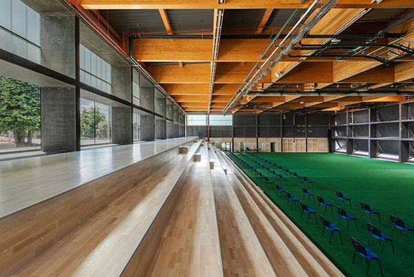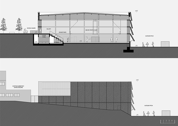 فضای داخلی مدرسه منعکس کننده این پیکره بندی شیب