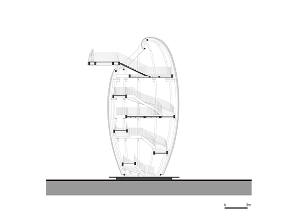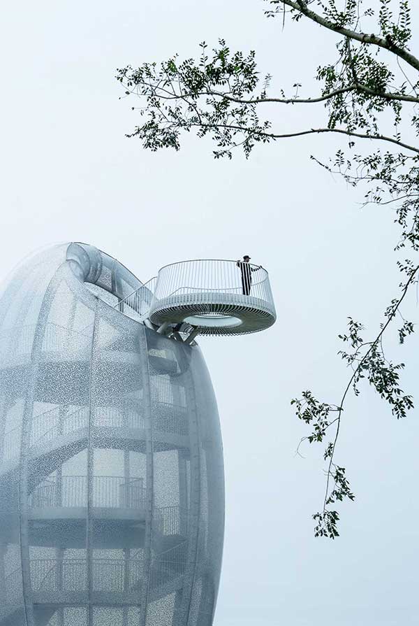 هنگامی که بازدیدکنندگان به دنبال راه پله های فولادی مارپیچ داخلی به این عرشه می